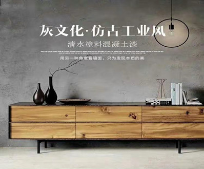 墻面水泥漆以極簡灰色效果映入眼簾,打造個性化,高品質(zhì)的空間,逼真的藝術(shù)仿水泥效果,適用于不同基材,內(nèi)外墻均可,表面即平整光滑也可呈現(xiàn)其清水不一的自然反應(yīng)色,水泥漆是混凝土的最高級表達形式,它顯示的是一種最本質(zhì)的美感,體現(xiàn)的是”素面朝天”的品味。